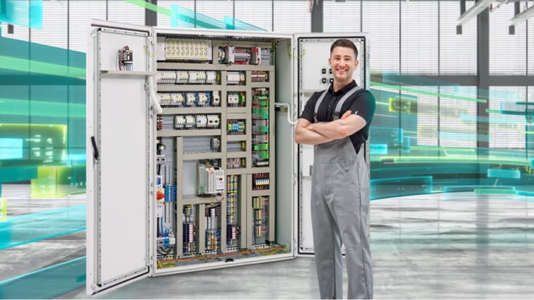 Soluciones para la industria, diseño de sistemas de control, variadores de frecuencia, programación de PLC, desarrollo de HMI, y sistemas SCADA.